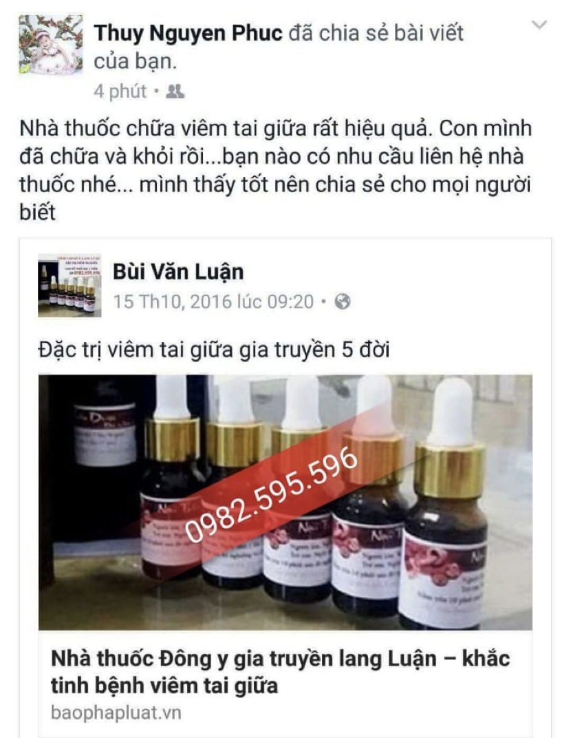 Khó có thể kể hết nỗi niềm của những người làm cha, làm mẹ đưa con đi tìm hướng chữa bệnh dứt điểm. Chị Thái Tường Vi (ở Khánh Hoà) đã liên hệ lương y Bùi Văn Luận để lấy thuốc chữa bệnh viêm tai giữa mủ cho con. Bé nhà chị bắt đầu bị viêm tai giữa từ năm lên 2 tuổi. Lỗ tai liên tục chảy mủ, dù đã đưa con đi đến nhiều bệnh viện tai mũi họng nhưng không được điều trị dứt điểm. Chưa kể đến, định kỳ hằng tháng chị phải cho con đi lấy ráy tai bằng thiết bị y khoa một lần vì ráy tai liên tục đẩy lên và chảy nước khiến em bé bị ù tai, mất tập trung chú ý. Được bạn mách lương y Bùi Văn Luận, chị đặt mua thuốc với tâm lý ăn may chứ nghĩ đã đi điều trị mấy năm trời không đỡ thì cũng khó có kết quả. Nhưng điều kỳ diệu là sau khi điều trị bằng thuốc của lương y Luận, tai của con tôi trở nên khô ráo, đi soi tai thì đã hết viêm hẳn.